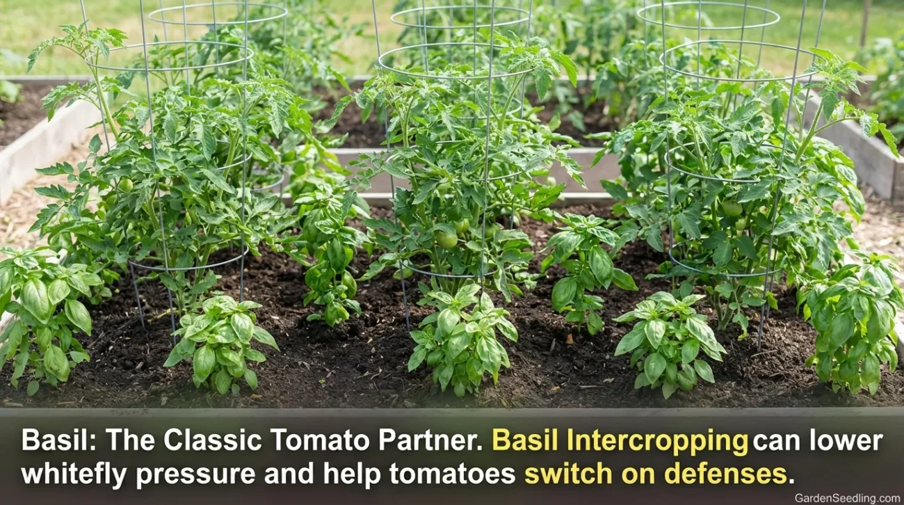 Basil and tomato synergy isn’t just a kitchen thing. In field research, basil intercropping has been linked to lower whitefly pressure compared with tomato grown alone, and lab-style work suggests basil scent can help tomatoes “switch on” defenses faster after damage.