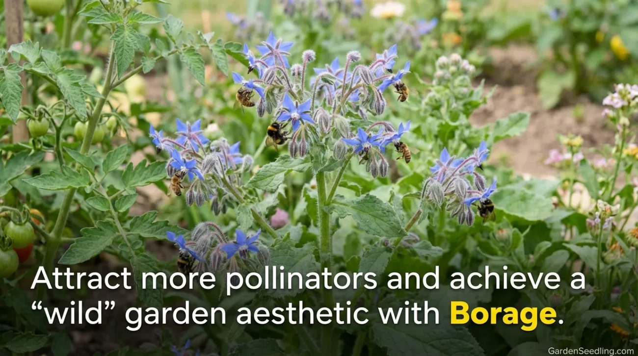 | Borage | Strong pollinator draw; adds diversity | Bed end or outside tomato row |