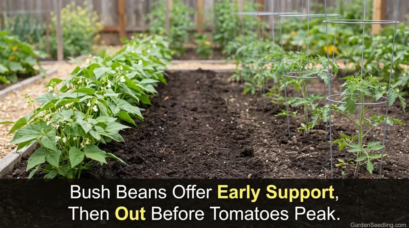 | Bush Beans | Short-season neighbor if spaced well | Outer strip, pulled mid-season |