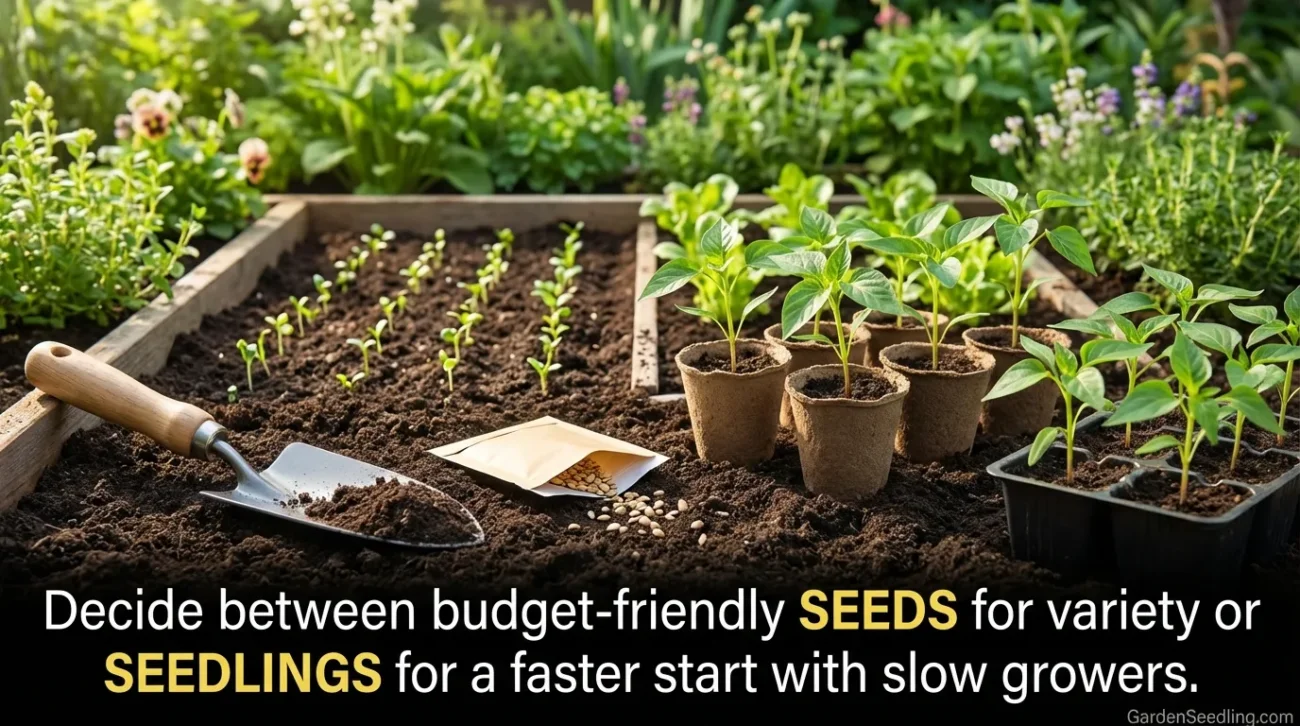 Seeds are budget-friendly and offer variety. Seedlings (young plants) give you a faster start for slow growers like tomatoes and peppers. A simple plan: use seedlings for warm-season crops, and use seeds for quick crops like greens, beans, and flowers.