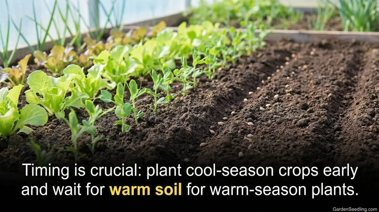 Planting time matters more than many beginners expect. Cool-season crops can go in earlier. Warm-season crops need consistently warm nights and warm soil. If you plant tomatoes too early, they often stall and become more prone to disease.